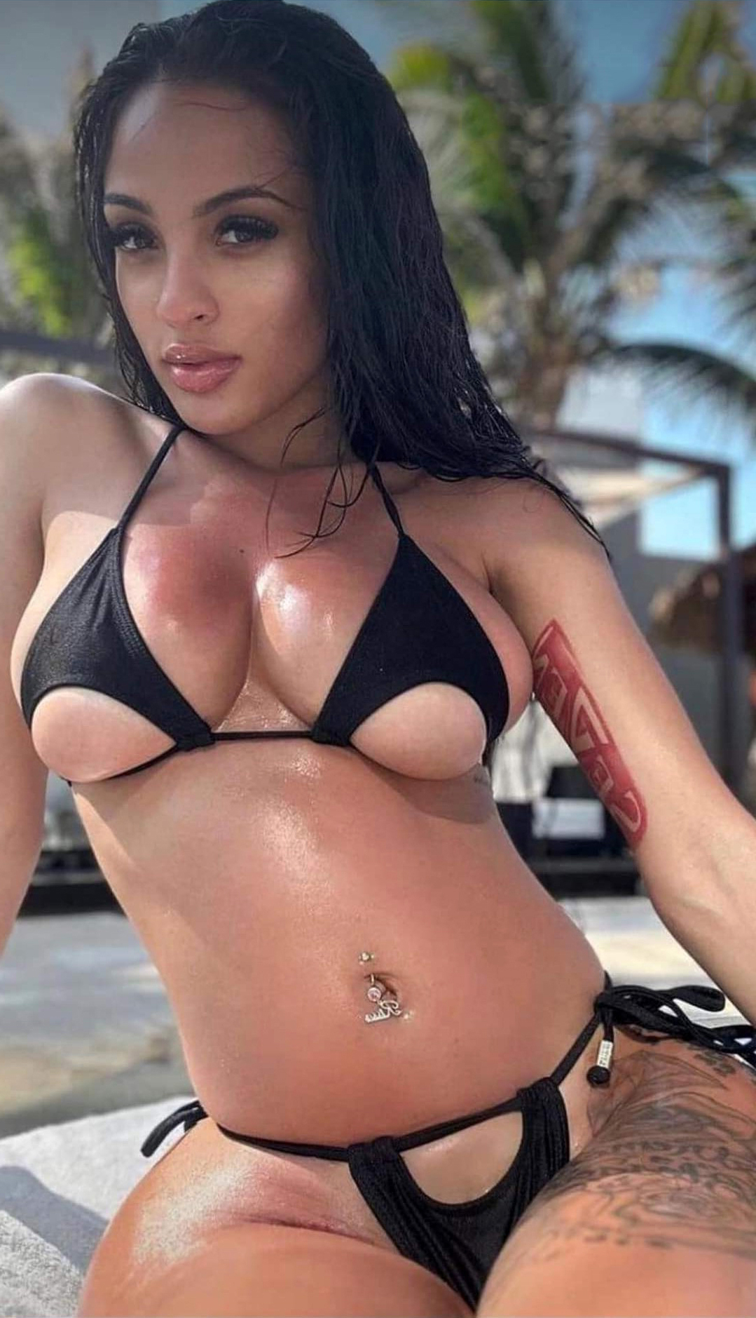 Porn pictures of pitch-black bikini models